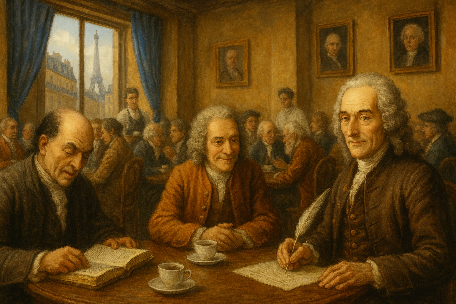 18세기는 **계몽의 시대(Age of Enlightenment)**였습니다. 이성, 합리, 과학을 중시하는 새로운 사조가 유럽 전역으로 퍼져나갔습니다. 파리 카페는 이러한 사상이 꽃피운 공간이었습니다.