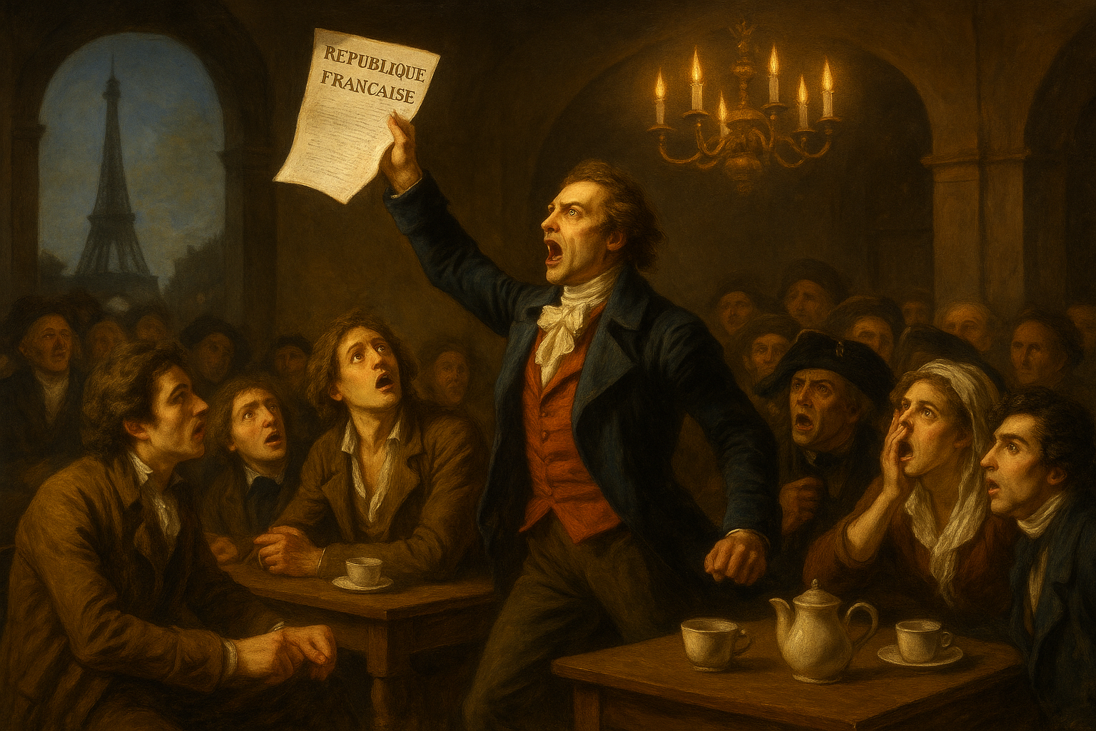 계몽사상이 확산된 파리 카페는 곧 혁명의 불씨를 키우는 무대가 되었습니다. 프랑스 혁명 직전, 학생과 시민, 지식인들이 카페에 모여 왕정과 귀족 사회를 비판했습니다. 정치 연설이 자연스럽게 이어졌고, 혁명 선언문이 낭독되기도 했습니다.