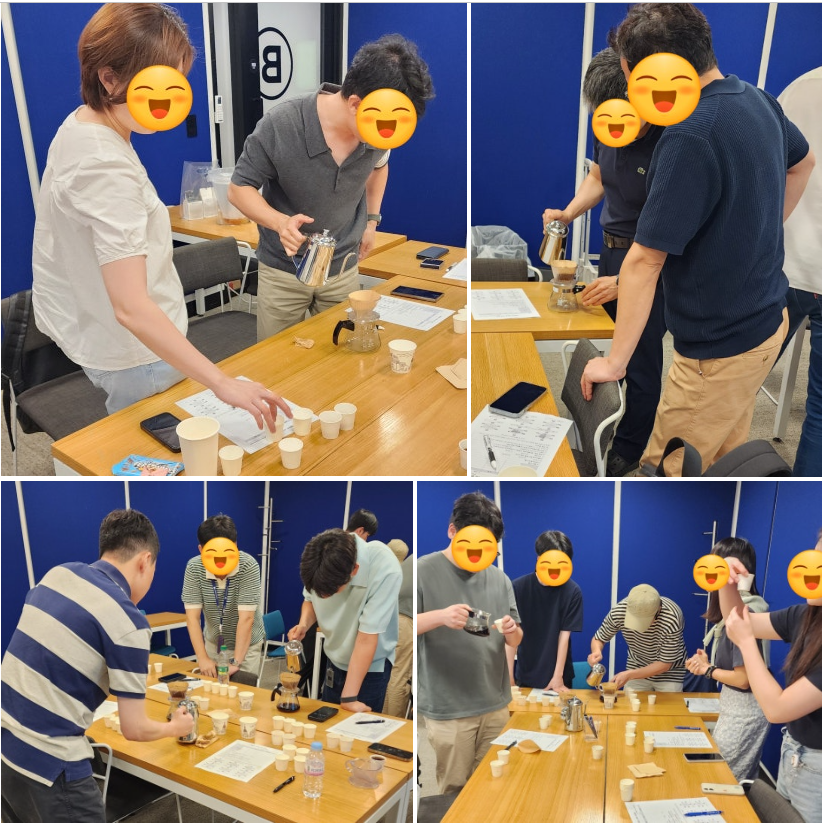 직원분들이 입장하시면서 강의를 시작했다. 짧고 굵게 진행해야 해서 템포를 조금 빠르게 가져갔지만, 모두 적극적으로 호응해 주셨다. 하루 종일 업무를 마치고 저녁 식사 후라 피곤하실 법한 시간대였음에도 끝까지 집중해 주셨고, 즐겁게 참여하셨다. 회사 특성상 커피에 관심이 많은 분들이 많아 호기심 어린 질문이 이어진 것도 인상적이었다.