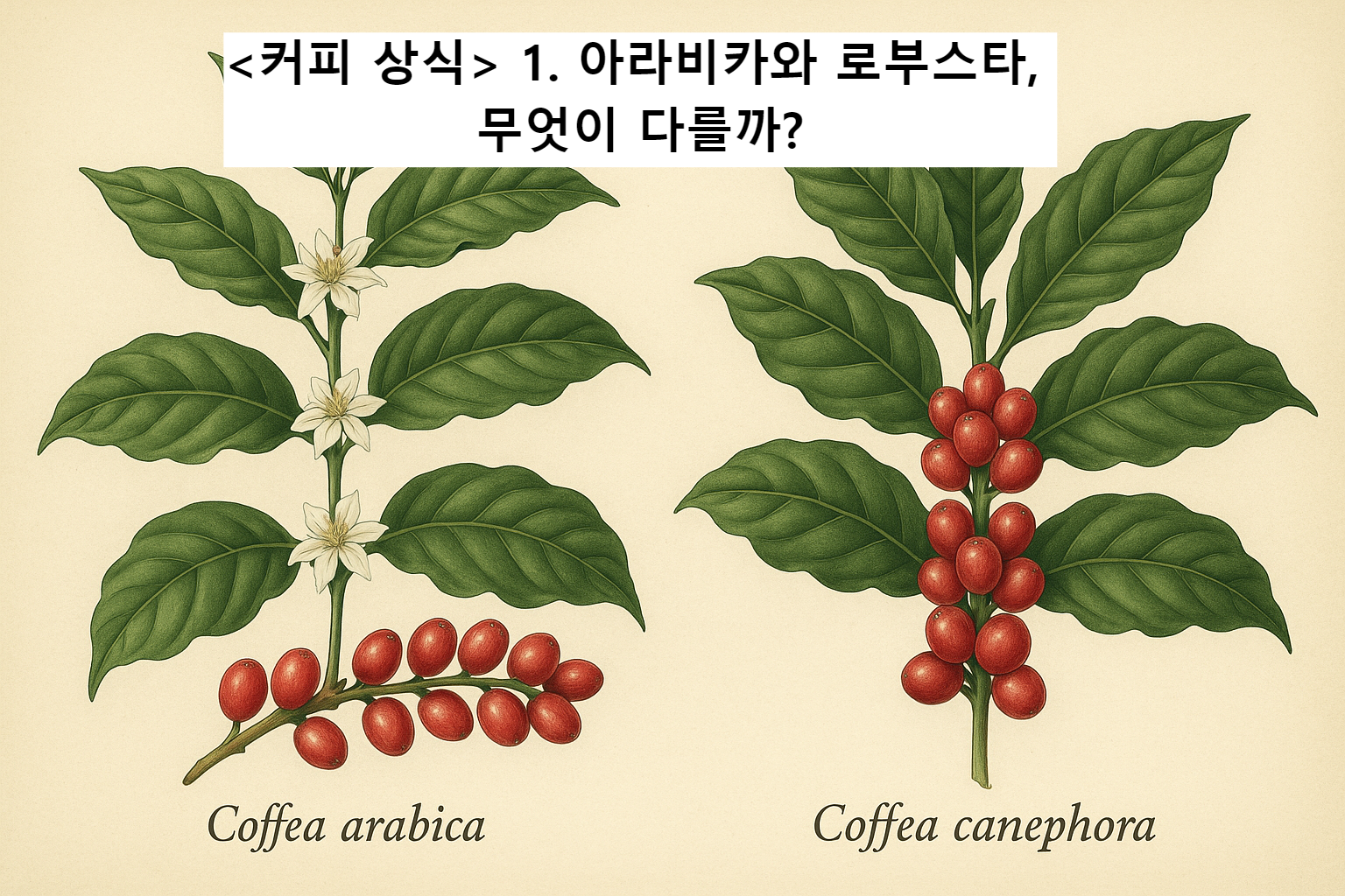 우리가 매일 마시는 커피 한 잔에는 수많은 이야기와 선택이 담겨 있습니다. 그중에서도 가장 중요한 것은 원두의 종류입니다. 전 세계 커피 생산량의 대부분은 **아라비카(Arabica)**와 **로부스타(Robusta)**라는 두 가지 품종이 차지하고 있죠. 이름은 익숙하지만, 구체적인 차이를 아는 분은 의외로 많지 않습니다. 오늘은 아라비카와 로부스타의 특징과 차이를 정리해 보겠습니다.