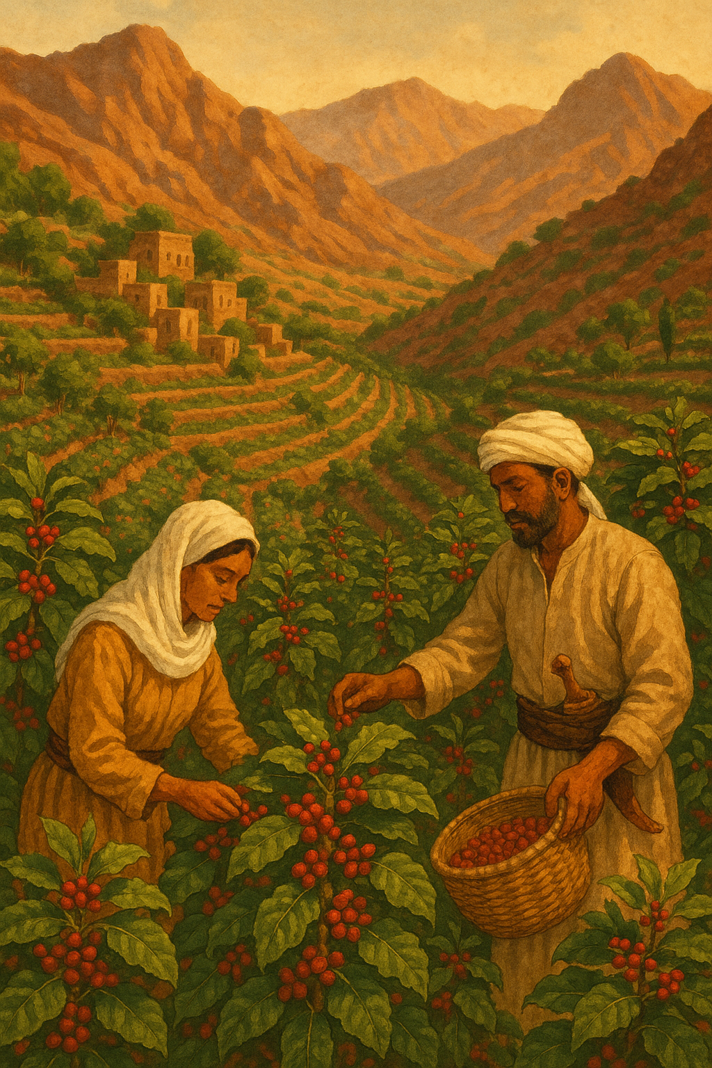 커피는 예멘의 산악 지형에서 재배되기 시작했습니다. 예멘 고원은 해발 1,500~2,000m 고지대가 많아 커피 재배에 적합했습니다. 특히 오늘날에도 유명한 모카(Mocha) 지역은 당시부터 커피 재배와 무역의 중심지였습니다.