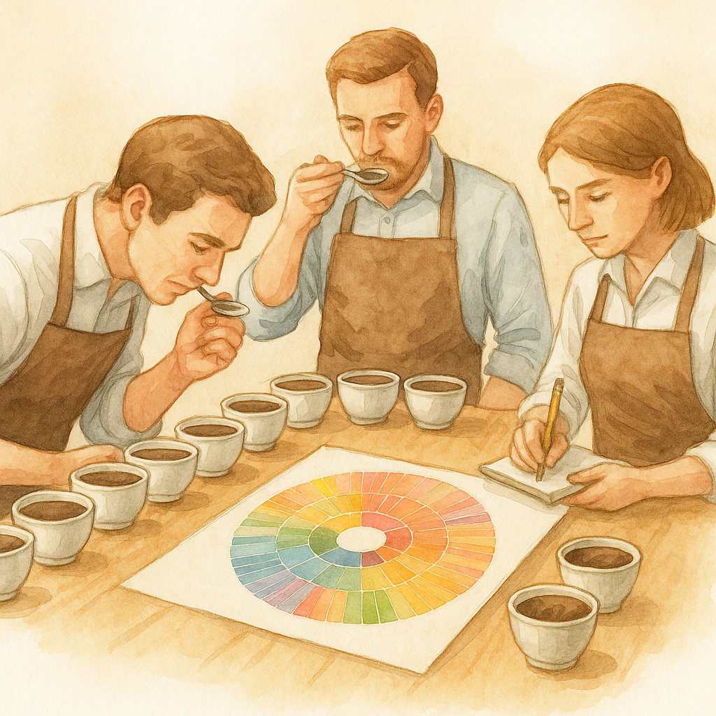 커피를 마실 때 느껴지는 막연한 인상을, 구체적인 언어로 바꾸어주는 도구인 셈이죠. 그래서 커핑 대회, 로스팅 교육, 품질 평가 현장에서는 반드시 쓰이고, 최근에는 일반 소비자들도 “내가 마시는 커피에서 무슨 향을 느끼는지”를 이해하는 데 활용합니다.