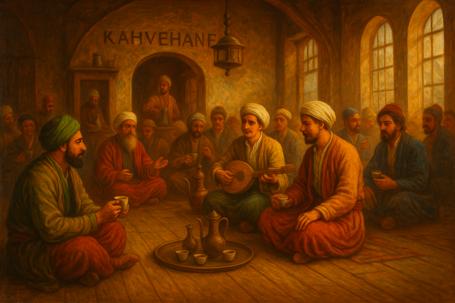 시인과 음악가들은 커피하우스를 창작 무대로 삼았습니다. 새로운 시와 노래, 연극과 인형극(카라괴즈)이 이곳에서 탄생했습니다. 외국 외교관과 여행자들의 기록에도 “이스탄불의 커피하우스 풍경은 도시 문화 그 자체였다”라는 묘사가 자주 등장했습니다.