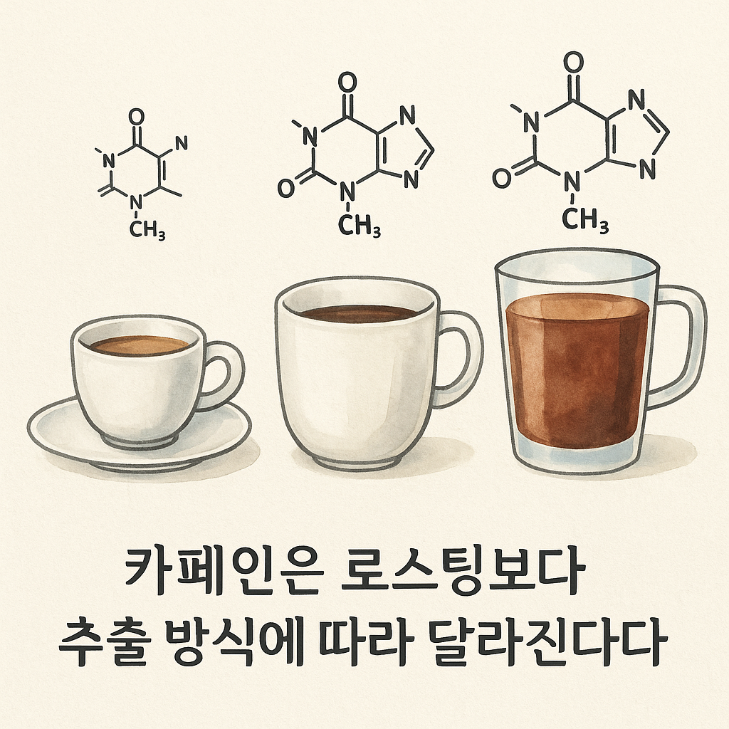 👉 결국 카페인 함량을 좌우하는 건 로스팅 정도가 아니라, 사용하는 원두의 양과 추출 방식이라는 결론에 도달합니다.
