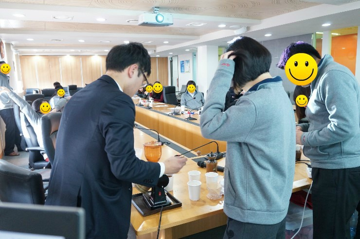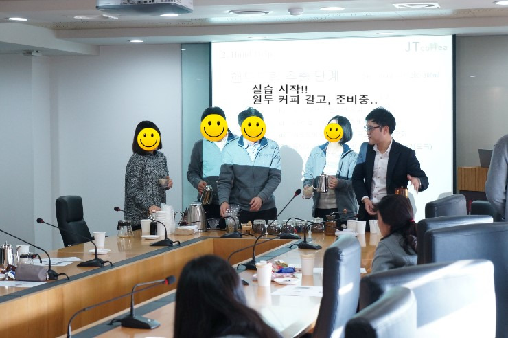다들, 추출한 커피를 맛보고 맛이 어떻게 다른지 비교하고 있으시네요..ㅋㅋㅋ