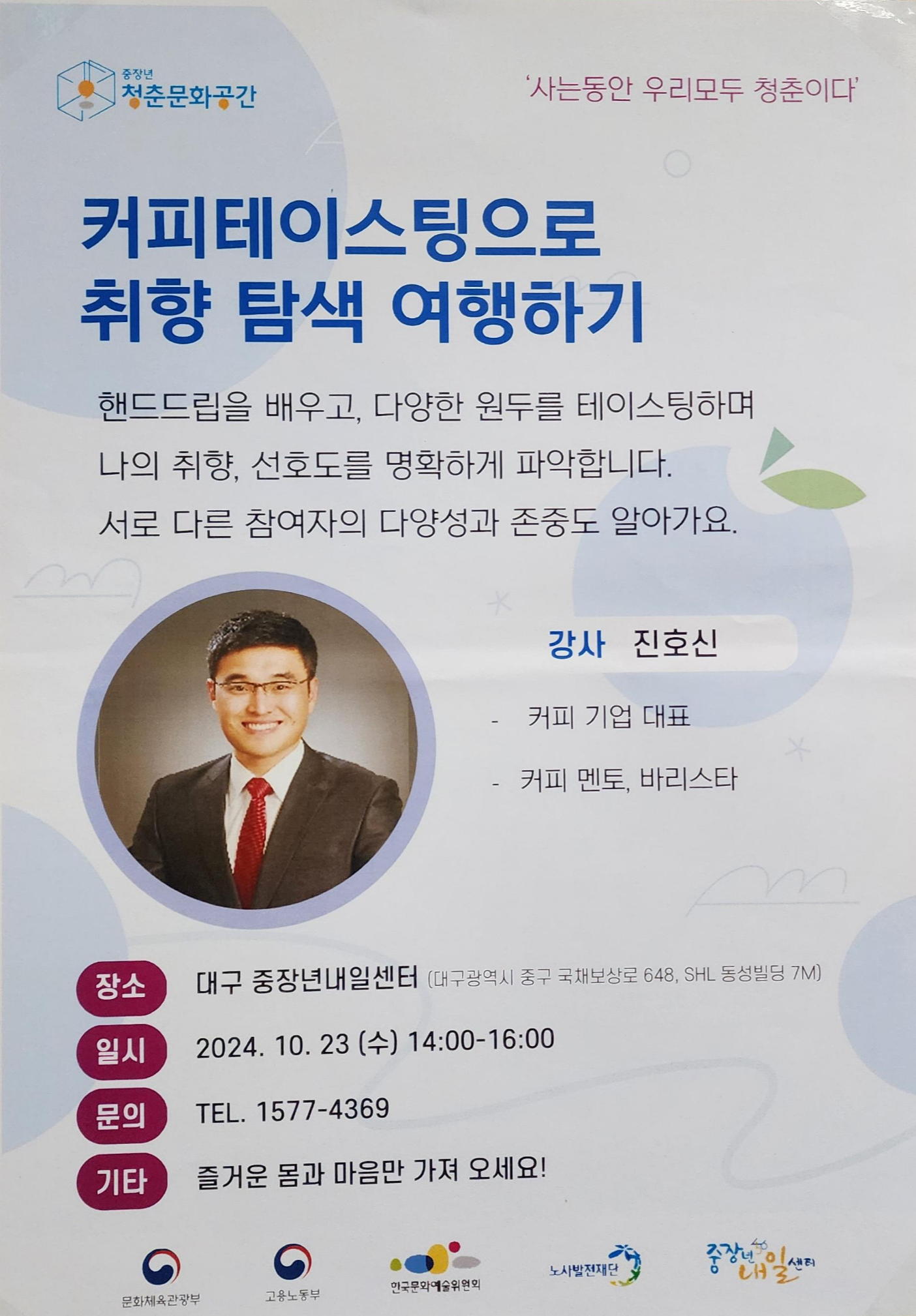 #커피교육 #청춘문화사업 #대구중장년내일센터 #커피워크샵 #핸드드립체험 #힐링강의 #소통워크샵 #중장년프로그램 #직장인소통 #커피멘토시니 #PermeateCoffee #커피클래스 #대구강의 #커피특강 #기업강의