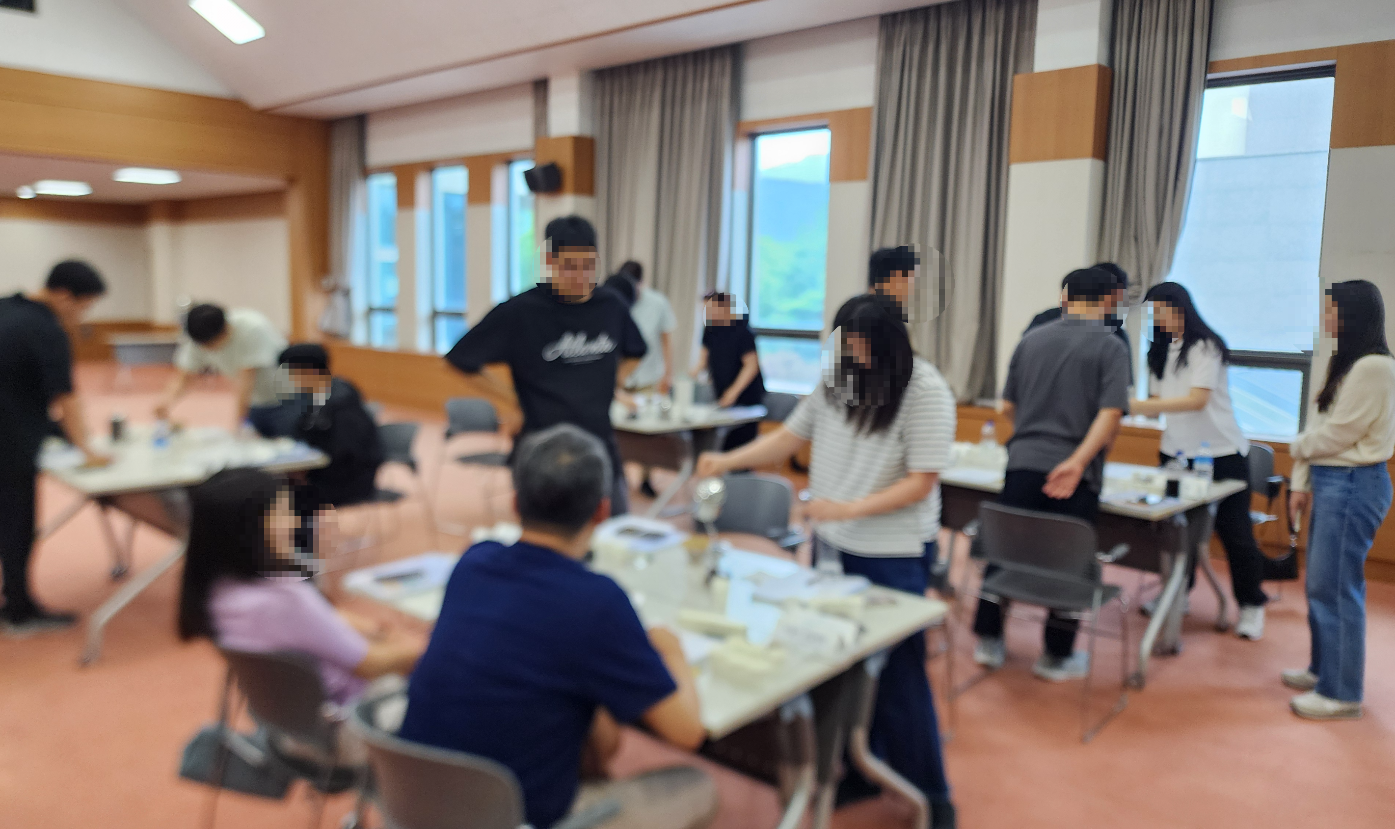 대화와 웃음이 강의장을 채우기 시작했습니다.