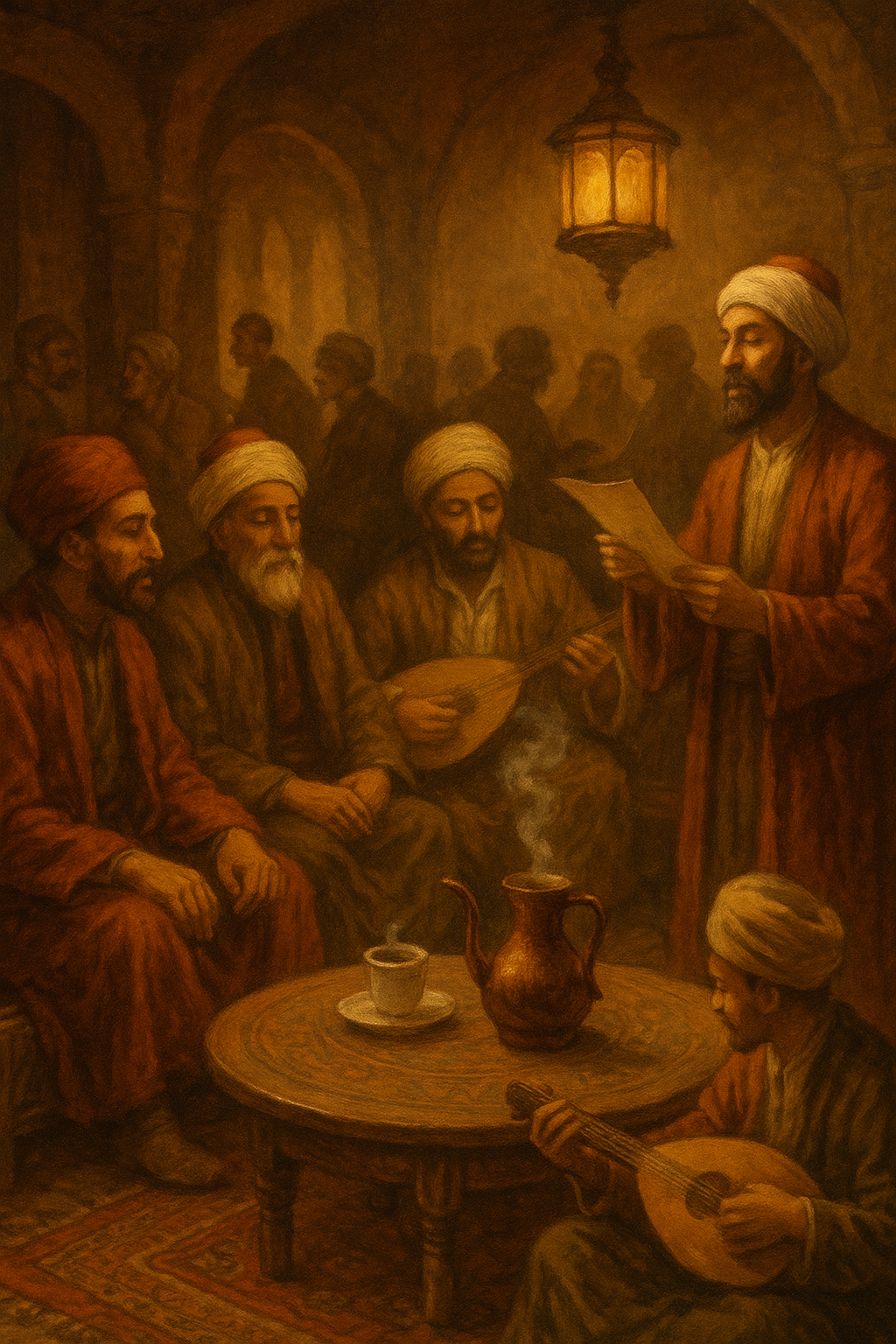 커피가 처음 음료로 자리 잡은 것은 15세기 예멘의 수피 수도원에서였습니다. 밤새 기도에 몰두하기 위해 마셨던 커피는 곧 종교적 의식의 동반자가 되었죠. 이후 오스만 제국의 커피하우스에서는 사람들이 모여 토론하고, 음악을 듣고, 장기를 두며 새로운 여가와 대화의 장을 만들어냈습니다.