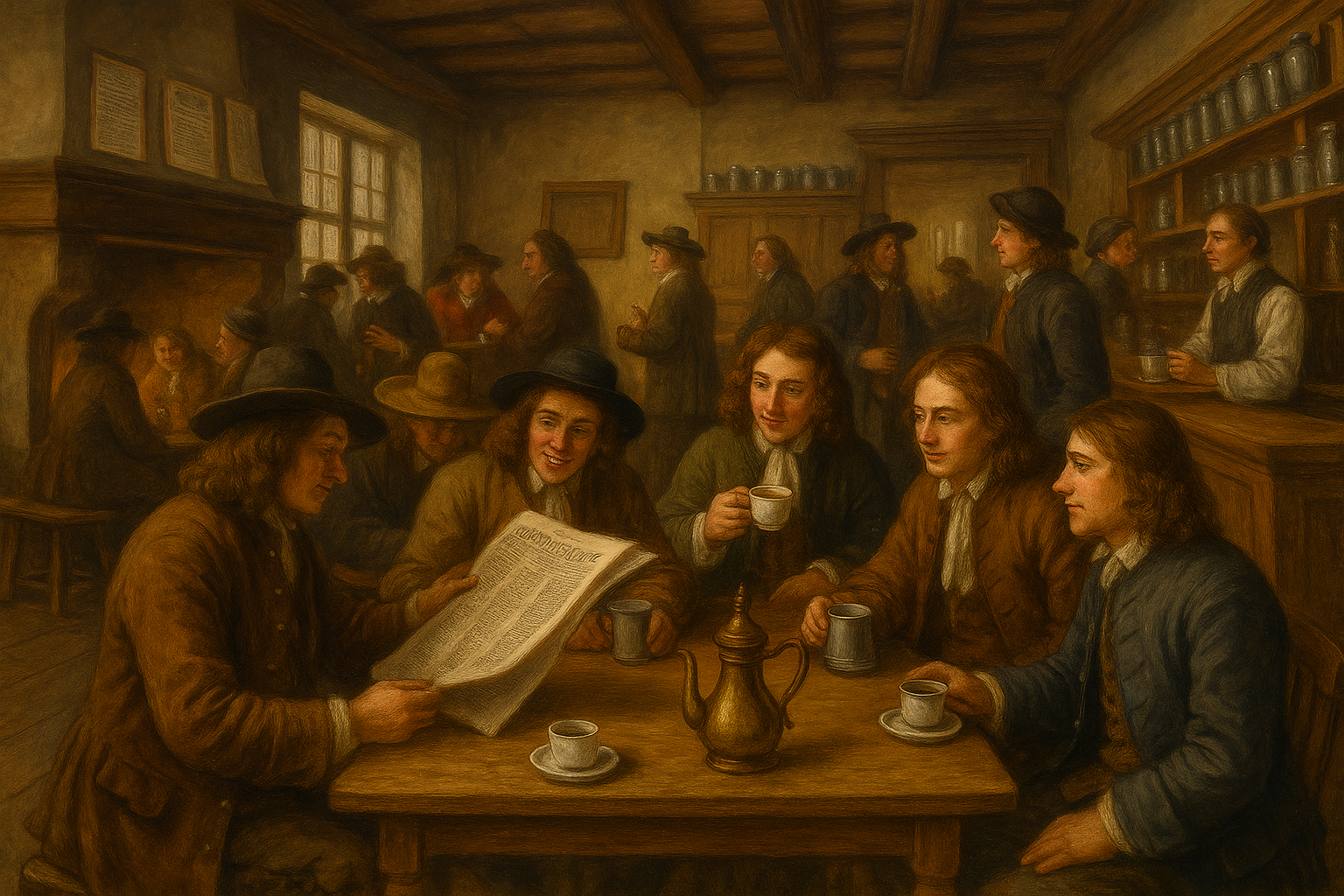 나중에는 이 정보 교환이 체계화되어, 커피하우스 자체가 사실상 신문사 역할을 하게 되었습니다. 오늘날의 저널리즘 문화는 바로 이곳에서 태어난 셈입니다.