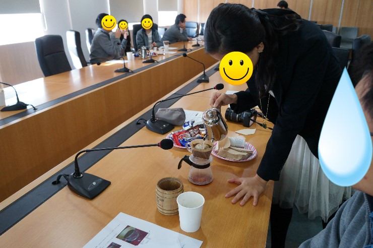 다들, 추출한 커피를 맛보고 맛이 어떻게 다른지 비교하고 있으시네요..ㅋㅋㅋ